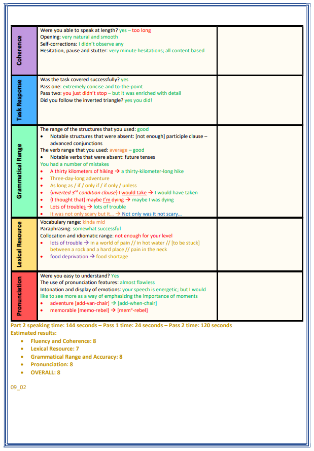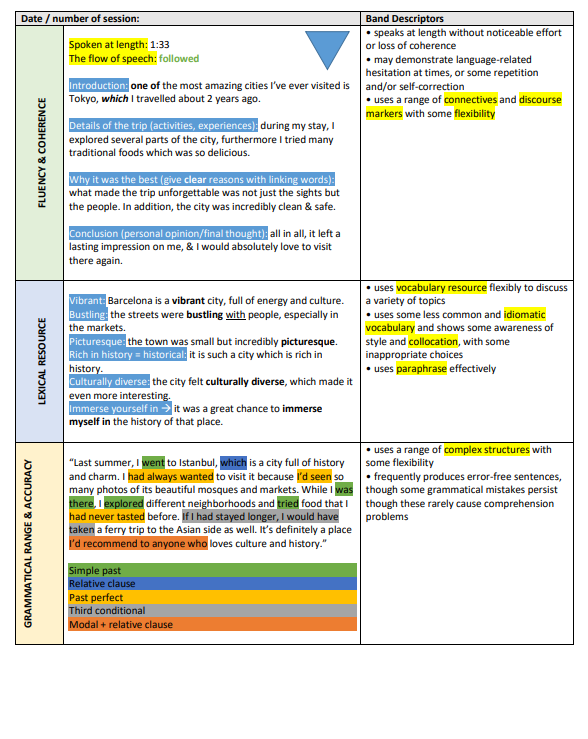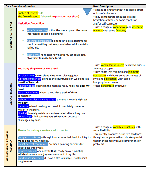 نمونه فیدبکهای جامع اسپیکینگ و رایتینگ آیلتس اختصاصی پرایم که هر جلسه در اختيار زبانآموزان قرار میگیرد